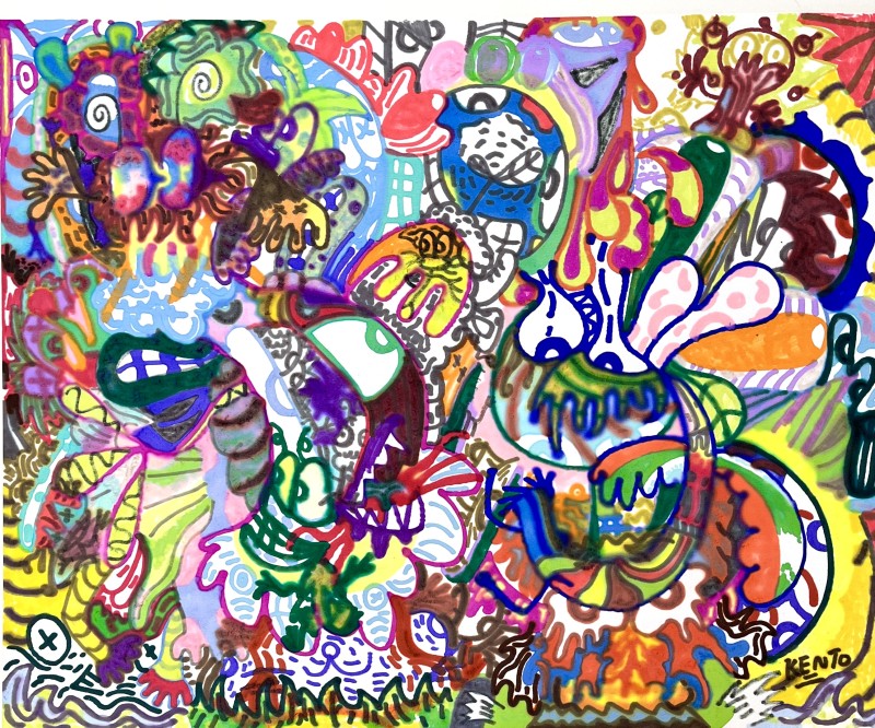 気の向くまま、筆の向くまま、キャンバスに描く線や色彩はまさに